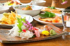 地の食材や全国各地の食材を織り交ぜた和食と、どこか馴染みのある癒しの空間をご提供致します。View More »