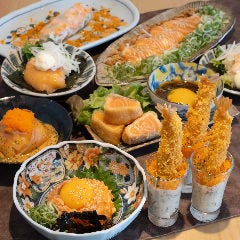 ◆【昼】とあ食堂(11:30~14:30) 名物!一汁七菜御膳1350円、極み海鮮丼1980円、平日限定だし巻き定食880円 ◆【夜】海老とサーモンと時々とあ(18:00~23:00) ねぎとろサーモンユッケ930円、海老入りもっちり水餃子3個380円、海老とスモークサーモンの生春巻き980円...View More »
