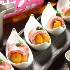 三宮駅から歩いてすぐ。完全個室でくつろげる空間♪ 料理長厳選のお肉や魚を使用した、多彩な美味をお楽しみいただけます。 ◆3時間飲み放題付コースが豊富 平日は3時間飲み放題付2,999円~ まるで雪崩!?豪快に肉寿司を味わう!サラダ、鮮魚も!「スタンダ-ドコース」2999円 選べる全4種の人気こ...View More »