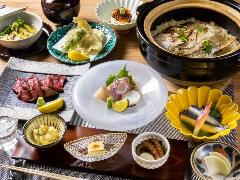 本日のおすすめには新鮮な魚介類を使用したお刺身、タタキ、和え物 牡蠣やふぐなどその時旬の食材をお楽しみいただくことが出来ます。 各種ご宴会にはおすすめのコースをご用意しております。 名物の土鍋炊込みご飯も含まれており5,500円~となっております。 店内は落ち着いた和の空間となっており カウン...View More »