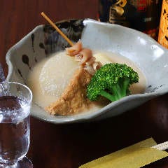 城下電停から徒歩4分。懐かしい昭和の雰囲気が漂う隠れ家で、心温まるひとときを過ごしませんか。 自慢のおでんは、じっくり煮込んだ特製の出汁が決め手。 大根や玉子など、定番のネタに奥深い旨味が染み込んでいます。 お酒が進む串揚げや一品料理も豊富にご用意しており、どれもこれも外せません! お飲み物は...View More »