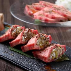 会社宴会や仲間とのお食事・誕生日や記念日に上質な焼肉を。 リーズナブルな価格で厳選仕入れの黒毛和牛をご提供いたします。 時間を気にせず立ち寄れる当店は深夜2時まで営業。 ◆必食の厚切り牛タンと人気メニュー 牛タンの旨味とねぎが好相性の「厚切りねぎ包み牛タン」 焼肉屋の肉寿司!広島牛を使用した絶...View More »