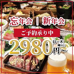 歓送迎会・キックオフ・取引先との挨拶・顔合わせなど、ご宴会に完全個室席をご用意致します。 【楽天ポイント還元】飲み放題付きコースは、以下をご用意! ★【オトク】ランチ限定ミニ肉まぶしのコース【飲み放題別】3000円★ ★【オススメ】前菜6種と和牛肉まぶしのコース120分【飲み放題別】5000円...View More »