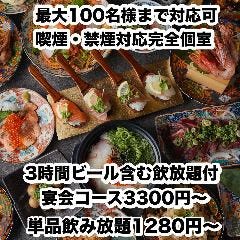 新鮮な鮮魚に焼き鳥・馬刺しなど海と山の素材を使った創作和食を是非。 当店では様々な創作和食を取り揃えております。クーポン利用でお得に。 新鮮なお造り・その他厳選された食材を使用した料理の数々をご堪能ください。 飲み放題付き宴会コースも2800円(税込)~ご用意しております。 全席完全個室 喫煙...View More »