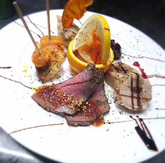市場から毎朝直送する、地魚を中心とした新鮮魚介と、 上質なお肉を絶妙な火加減で仕上げるステーキが自慢♪ 豪華舟盛りを楽しめるコースや、2・3次会に嬉しいコースなど、 様々なシーンに合うコースを豊富にご用意しております! ≪コース例≫ ◆【食べ飲み放題♪】人気!鉄板串やステーキなど食べ飲み放題...View More »