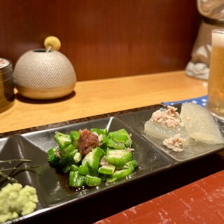 オーナー自ら、その日一番の食材を見極め、仕入れた旬の味わいのお料理をご堪能いただけます。食通の舌をも唸らせる料理を、お愉しみください。View More »