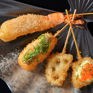 各種ご宴会にぴったりの飲み放題付きコースが充実! バリエーション豊富な創作巻き串や、 SNS映えバッチリのUFOチーズフォンデュも人気です♪ カウンター席や少人数向け個室、団体向けの半個室など 様々なタイプのお席をご用意しておりますView More »