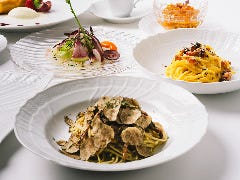旬の食材をカジュアルフレンチに昇華した料理をご提供しております。 緑を基調とした空間で優雅な時とお食事をお楽しみください。View More »