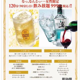 [築町駅]1杯いくらなんて細かいことと気にせず飲み放題で好きなだけ飲んでください!ビール、カクテル、焼酎、日本酒、ワインとお酒の種類も豊富で、お酒が苦手な人でもソフトドリンクで一緒に盛り上がりましょう!2時間3時間でも飽きることなく楽しめます。