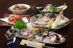 ■お食事会などにおすすめ!2時間飲み放題付きコース ≪イチ押し≫ ・豪快舟盛りと海鮮ちゃんこ鍋がついた特選コース 5,500円 ≪人気コース≫ ・まぐろ三種盛りと海鮮旨塩鍋がついた定番コース 4,000円 ・刺身四種盛りといかゴロ味噌バター鍋がついた満足コース 4,500円 【おすすめ料...View More »
