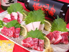 熊本と言えば!の馬肉料理を存分に満喫◎ 1本ずつ丁寧に焼き上げた炭火料理も当店自慢の一品です。 完全個室のプライベート空間でゆっくりご堪能ください。 ◆本場熊本の新鮮な馬肉をぜひ♪ 『馬刺し盛り』や『馬肉ユッケ寿司』など 新鮮な馬肉だからこそ楽しめるメニューを豊富にご用意。 焼きがお好みの方は...View More »