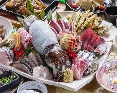 月まるの一押し!歓送迎会コース ★2時間飲込3,500円★ ◎ヤリイカの姿造りに天然旬魚と人気メニュー抜粋コース 【刺身】朝〆旬イカの姿造りと旬の魚で5種盛 【鉄板物】豚バラともやしのバター鉄板 【揚げ物】甘エビのクリームコロッケなど全9品 ★2時間飲込3,500円★ ◎朝〆イカ姿造り付の刺...View More »