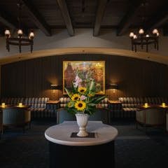 ステンドグラスを中心とした室内照明、格調高いスペイン調の室内インテリア。ピアノの生演奏に耳を傾けながら、ご歓談、ご商談などにご利用ください。View More »