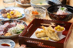 ◆旬食材をふんだんに使用。コースは会席スタイルでご提供。 季節毎にかわる一皿、一皿…彩り豊かな逸品の数々を お楽しみいただけるコースは、飲み放題付きで7,000円 ~。 人気の高い日本酒や焼酎も飲み放題に含まれ、大変好評です。 ◆定番料理と仕入れによってご提供する旬の料理が魅力的。 馬刺しや名...View More »