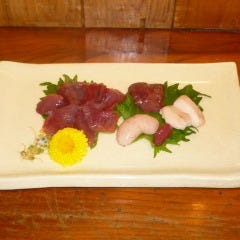 [カツオ 腹皮刺し、ゆうあん焼] 枕崎産ぶえん鰹の腹皮を使用。刺し、焼きともに限定商品となります。 炭火焼専門店ではございますが、鹿児島の郷土料理の数多く取り揃えており、県内のお客様、県外のお客様、どちらにも楽しんでいただける料理を提供しています。 日本三大地鶏の「さつま地鶏」、鹿児島のブラン...View More »