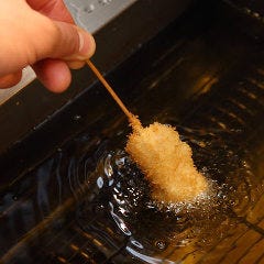 旨い肴に旨い酒、これぞ大人の特権! 名物は和食出身の料理長がお届けする『串揚げ』と旬食材を使った "捻り"のある逸品を肴に一献いかが! ◆衣の中で食材を蒸すように揚げる名物串揚げ! 生パン粉・旬野菜・グリーンオイルの三重奏!北海道"なまら塩"や出汁ポン酢でどうぞ ◆全コース串揚げ&とろろ鍋付き...View More »
