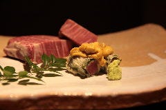 北新地マグシェでは、日々市場に通い詰めることで得た上質なマグロの希少部位お客様に提供しております。 マグロの部位はさまざまな味わいがあり、「ホントにマグロか??」と思わせる部位もチラホラ・・。 美味しいマグロと極上の日本酒のマリアージュを、リーズナブルな価格で満喫☆仕入努力とはまさにこのこと!...View More »