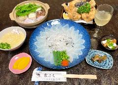 “ふぐひとすじ”ふぐにこだわり、ふぐしか出さない、ふぐ料理専門店。一年中ふぐが食べられます。 ふぐ専門卸(青木フグ商店)だからできる、この安さ、とらふぐの品質、加工技術には、絶対の自信をもちます。ふぐ刺しは、1枚1枚が厚いから、かみごたえも、じゅうぶん。個室(すべて個室)でゆっくりと、フルコー...View More »