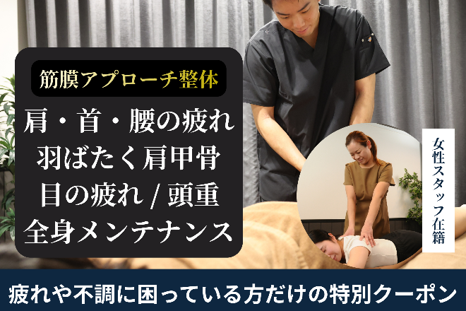 【20~40代の女性が中心のお客様層です】根本的に悩みを改善したい方におすすめ◎筋膜アプローチ整体は筋膜にやさしくアプローチし、巡りを整え、内側から美しさを引き出します。View More »