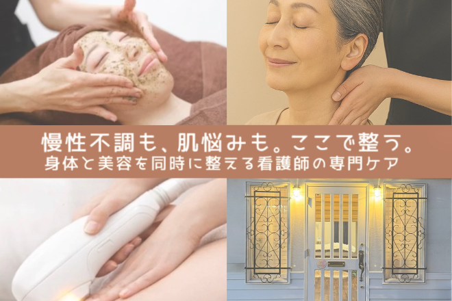 本気の不調に応える『コンディショニング整体』で根本ケア◎『ハーブピーリング』『光フェイシャル』で肌悩みを解決へ導き、刺激を抑えた『美肌脱毛』も。看護師の知見を活かした施術で初めての方も安心です。View More »