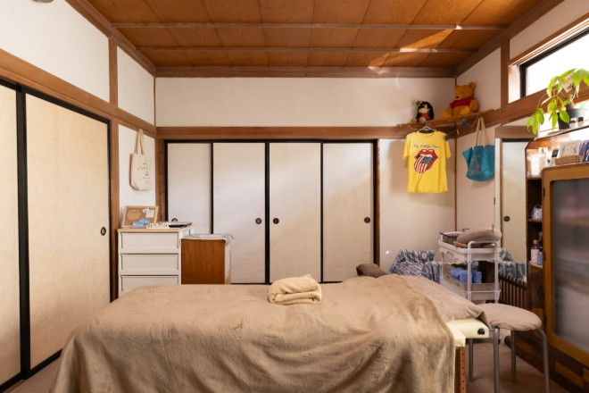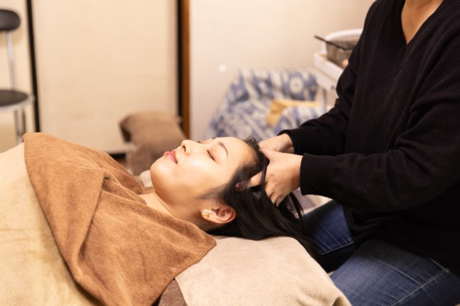 温泉街の静かな一角、民泊の和室で受ける癒しのひととき。気軽に立ち寄れて、ドライヘッドマッサージで心も頭もすっきり整います。