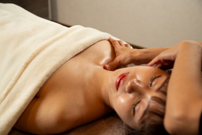 年齢とともに変化しやすいデコルテやバストを、ふっくらハリのある印象へ導きます。巡りが整うことで疲れのケアやリラックス作用も期待できます