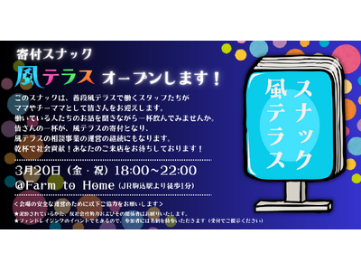 寄付スナック風テラス NPO法人風テラス主催、3月20日(金祝)に開催 NPO法人風テラスは、2026年3月20日(金祝)、風俗の世界で働く人の相談支援活動を広く知っていただくためのチャリティ...