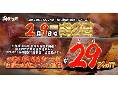 株式会社肉屋の台所は2026年2月9日(月)「肉の日」限定で、看板コースのA5黒毛和牛焼肉食べ放題「肉屋の台所コース」を29%オフの4,300円(税込) にて提供する特別キャンペーンを実施致し...