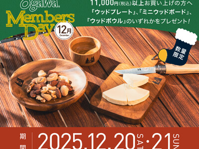12月のogawaMEMBERS DAYは19(土)・20(日)!今月はWood食器プレゼント!