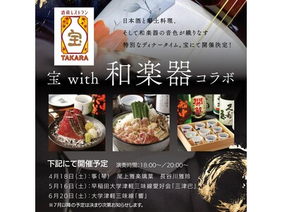 日本酒×郷土料理×和楽器が織りなす特別ディナー。酒蔵レストラン宝の「和楽器コラボDay」、春夏スケジュールを公開