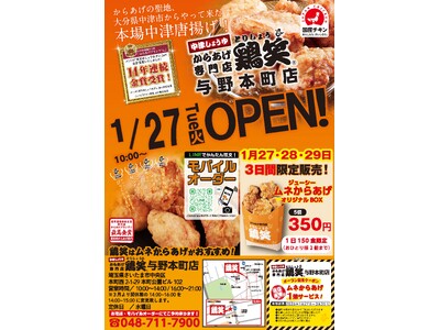 【鶏笑】からあげ専門店「鶏笑(とりしょう)与野本町店」1月27日(火)オープン!お得なキャンペーンも同時開催!