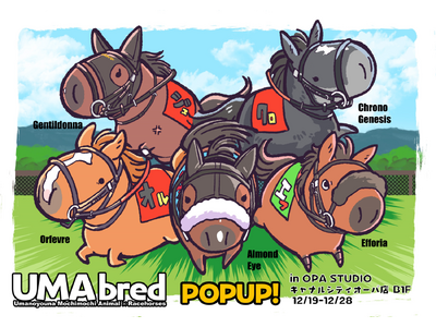 これまでのUMAbred POPUPで販売した商品の一部アイテムを販売いたします。 イベント概要 実在の競走馬引退馬を「UMA」(ウマのようなモチモチアニマル)として描きおろすグッズブランド「...