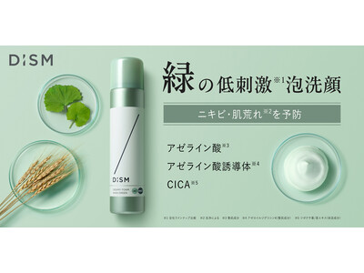 メンズスキンケアブランド「DISM(ディズム)」、Wアゼライン酸原料※1×CICA※2配合!ニキビ・肌荒れを防ぐ※3、緑のもっちり泡洗顔「ディズム クリーミーフォームウォッシュ グリーン」を新発売