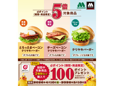 株式会社NTTドコモ(以下、ドコモ)は、モスバーガーにおいて、「対象商品はdポイント5倍キャンペーン(4月5月)(以下、本キャンペーン)」を2026年4月10日(金)から2026年5月10日(...