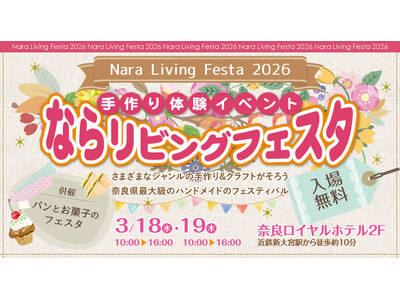 【3月18・19日】手作りの魅力がぎゅっと!奈良県最大級のハンドメイド&クラフトの祭典「ならリビングフェスタ2026」を奈良ロイヤルホテルで開催