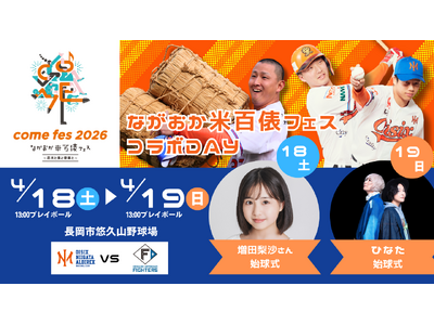 オイシックス新潟アルビレックスベースボールクラブは、4月18日(土)19日(日)の北海道日本ハムファイターズ戦にて、「ながおか米百俵フェス コラボDAY」を開催することをお知らせいたします。 ...