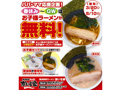 物価高に負けない!横浜家系ラーメン「京いち家」が、春休みからGWまでお子様ラーメン無料で子育て世帯を応援。