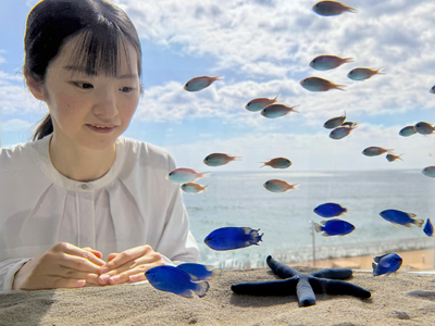 見頃を迎える国営ひたち海浜公園のネモフィラの風景をモチーフに演出した特設水槽が、アクアワールド・大洗に4月9日より期間限定で登場!