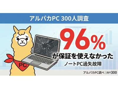 【300人調査】ノートPC故障、保証が役立ったのは「わずか4%」ー96%が"保証の空白地帯"に。中古PC専門アルパカPC、過失もカバーする保証を月額250円~で開始