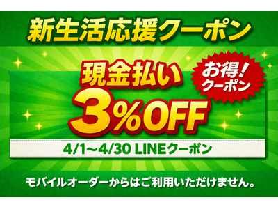 春のスマイルキャンペーンを実施中。4月1日(水)~4月30日(木)はLINEクーポン提示で現金支払い3%OFF、毎月890の付く日はポイント2倍デーも開催 有限会社ナチュラルスマイル(代表取締...