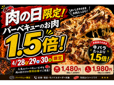 【ステーキのどん】3店舗限定で、4月の肉の日(4月29日)にどん食べ放題をご注文で、『和牛サーロインの切落し』をプレゼント!