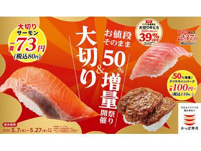 株式会社活美登利(本社:東京都品川区、代表取締役社長:土屋秀仁)が運営する「回し寿司活/寿司活」は、4月29日(水)~5月10日(日)の期間限定で「お祝いメニュー」を販売いたします。 ゴールデ...