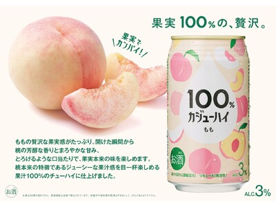 新商品『果実100%の、贅沢。』100% カジューハイ<もも>フレーバーが4月7日から新登場!