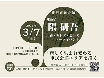 ~建築家隈 研吾 講演会 × 市運営者設計者トークイベント~ 藤沢市が推進する、市民会館エリアを再整備するプロジェクト「OUR Project(生活文化拠点再整備事業)」について、検討に携わる...