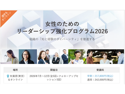 【女性のためのリーダーシップ強化プログラム2026】組織の「知と経験のダイバーシティ」を推進する公開講座を、秋葉原会場&オンラインで7月から開講!