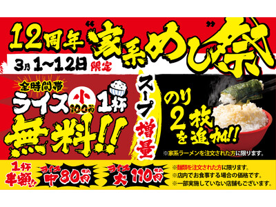 2026年3月1日(日)~12日(木)まで12日間ぶっとおし! 壱角家『12周年祭』開催!ライス(小)無料&海苔2枚増量で究極家系めし解禁!