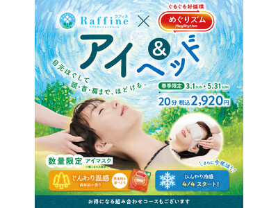 【春季限定】お客様満足度94.4%、昨年14万人が体験!蒸気アイマスクで深くととのえる、ラフィネ×めぐりズム「アイ&ヘッド」キャンペーンが今年も登場