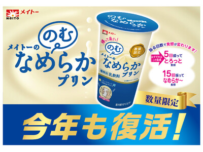 "飲む"プリン再び! 累計出荷本数200万本超え、大反響を受け数量限定で復活決定 『のむメイトーのなめらかプリン』