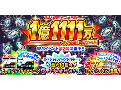 『にゃんこ大戦争』1億1111万ダウンロード突破記念イベント第2弾開催のお知らせ
