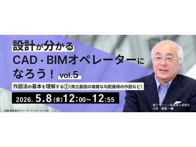 「設計が分かるCADBIMオペレーターになろう!」「Revitビギナーこそ知っておくべきファミリの仕組み」 株式会社クリークアンドリバー社(C&R社)は5月8日(金)と20日(水)、建...